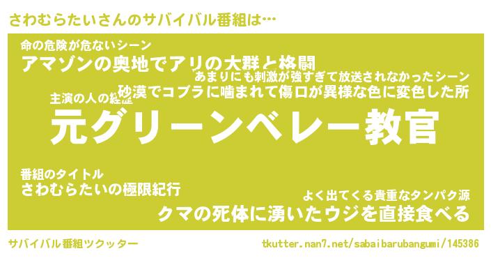 | 伝説のあだ名 | 『不死鳥の傭兵さわむらたい』 |