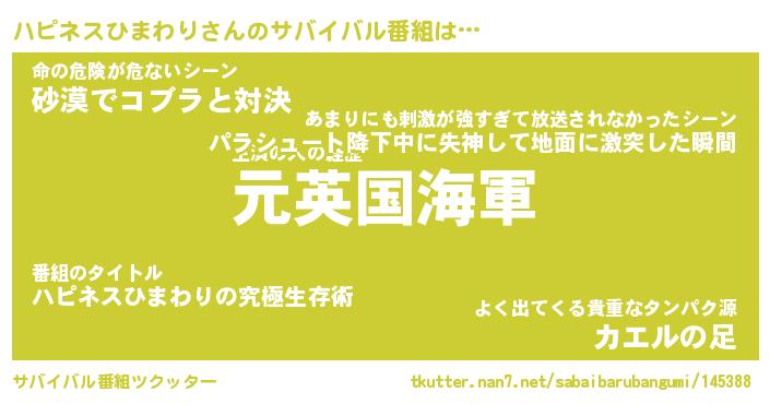 | 胡散臭い通販商品みたいなあだ名 | 『必ず成功する霊験あらたかなお札…その名も「ハピネスひまわり」』 |