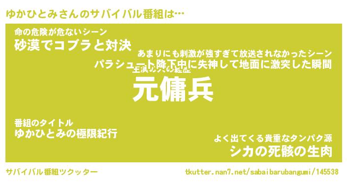 | ヒーロー風カッコイイあだ名 | 『スーパーユカヒトミ』『魔戒騎士ユカ』 |