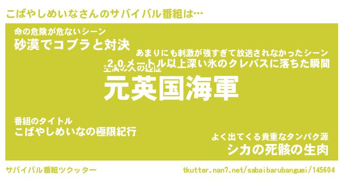| ヘコむあだ名 | 『こばにゅー』『牛乳』『こばぷりん』 |