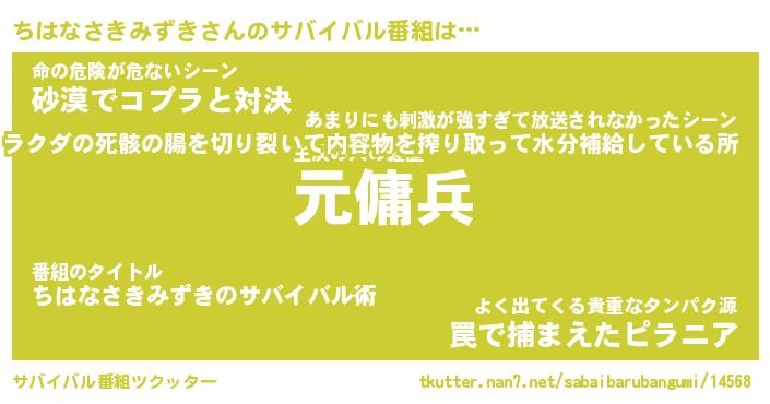 | 伝説のあだ名 | 『封印されし傭兵ちはなさきみずき』 |