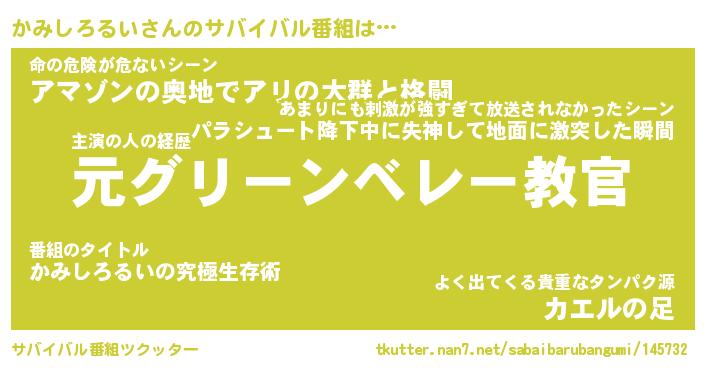 | 伝説のあだ名 | 『不死鳥のスナイパーかみしろるい』 |