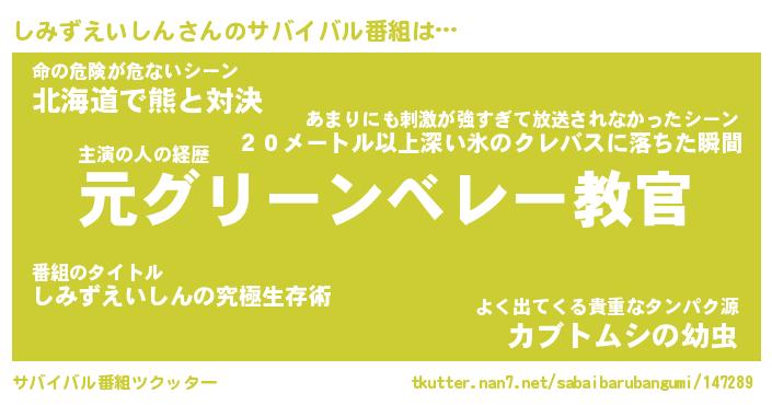 | ヘコむあだ名 | 『しみにゅー』『なまこ酢』 |