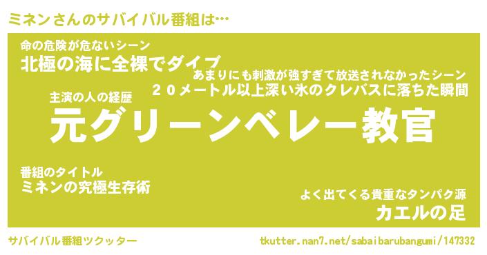 | ヒーロー風カッコイイあだ名 | 『スーパーミネン』『ウルトラミネンマン』 |
