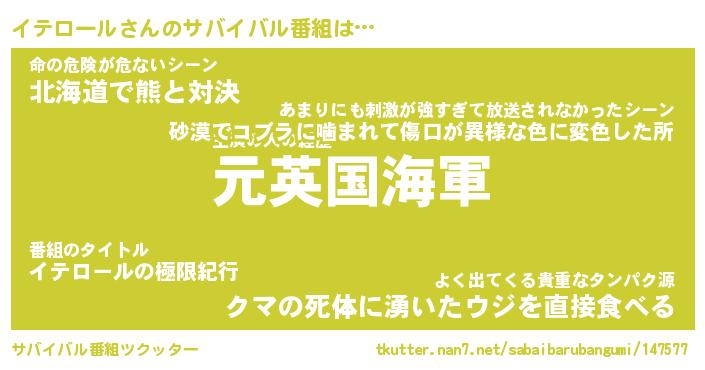 | ヒーロー風カッコイイあだ名 | 『スーパーイテロール』『魔戒騎士イテ』 |