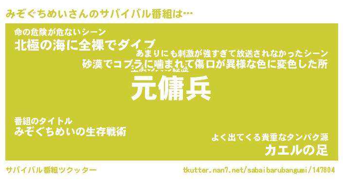| 胡散臭い通販商品みたいなあだ名 | 『億万長者になれるブレスレット…その名も「みぞぐちめい」』 |