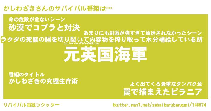 | 胡散臭い通販商品みたいなあだ名 | 『必ず成功するブレスレット…その名も「かしわざき」』 |