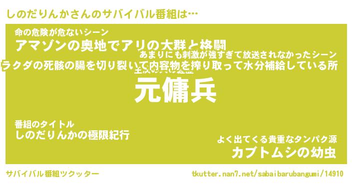 | ヘコむあだ名 | 『しのっふぃ~』『酢こんぶ』 |