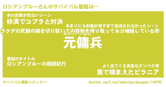 | 胡散臭い通販商品みたいなあだ名 | 『億万長者になれるブレスレット…その名も「ロシアンブルー」』 |