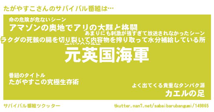 | ファンタジー風あだ名 | 『タガフェル』『エターナルタガヤスコー』 |