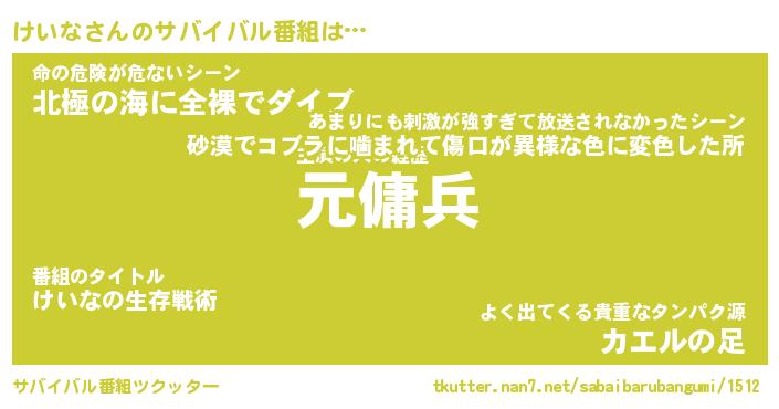 | 胡散臭い通販商品みたいなあだ名 | 『億万長者になれるブレスレット…その名も「けいな」』 |