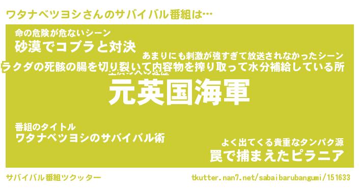 | 伝説のあだ名 | 『伝説の傭兵ワタナベツヨシ』 |