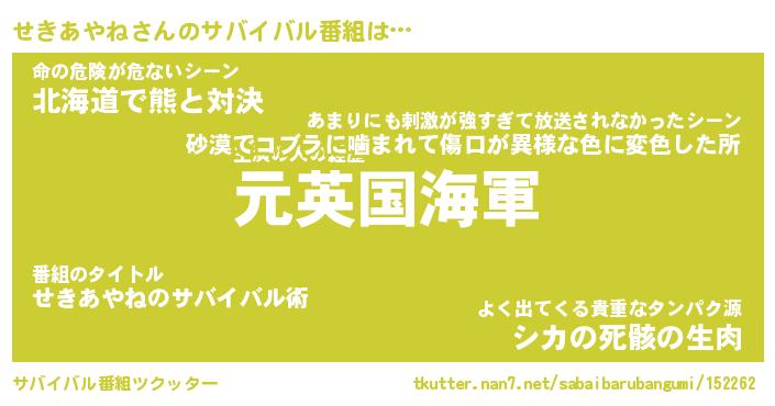 | 伝説のあだ名 | 『伝説のスナイパーせきあやね』 |