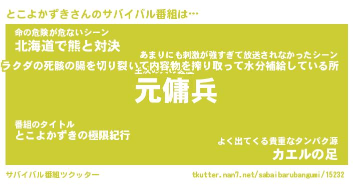 | 伝説のあだ名 | 『封印されしスナイパーとこよかずき』 |