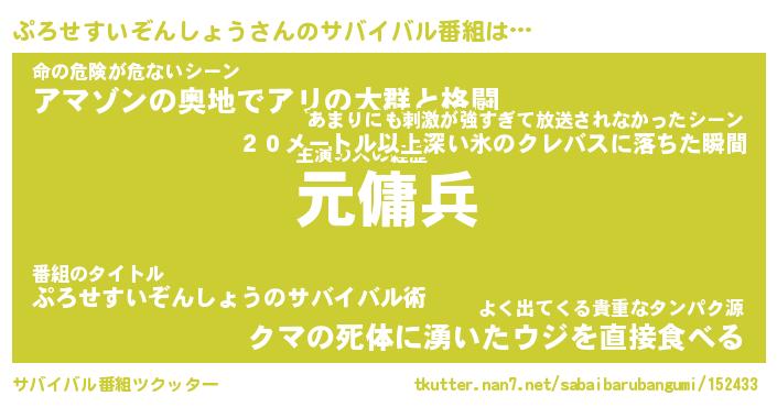 | 伝説のあだ名 | 『封印されし傭兵ぷろせすいぞんしょう』 |