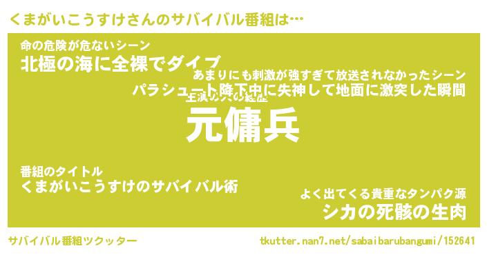 | 胡散臭い通販商品みたいなあだ名 | 『億万長者になれるブレスレット…その名も「くまがいこうすけ」』 |