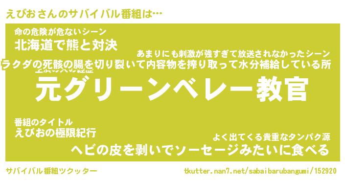 | 意味不明あだ名 | 『ペロリンえびお』『えびおフォーエバー』 |