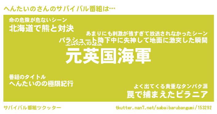| 伝説のあだ名 | 『伝説のスナイパーへんたいの』 |