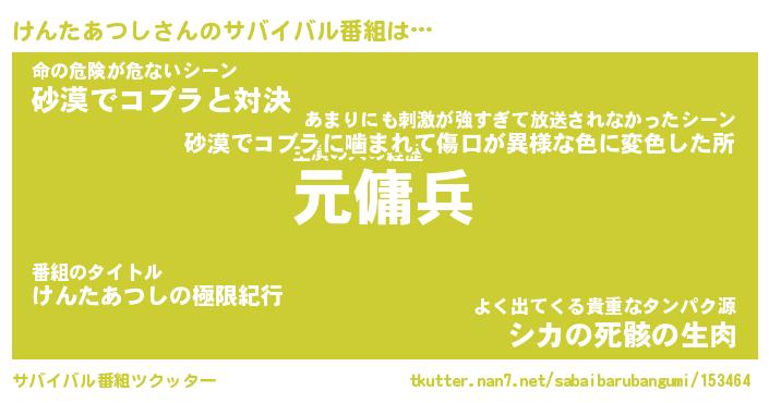| 肩書あだ名 | 『けんたあつしCEO』『けんたあつし団長』 |