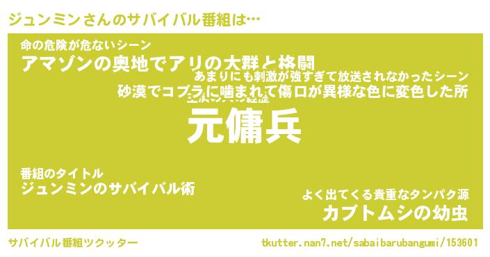 | ヒーロー風カッコイイあだ名 | 『スーパージュンミン』『黄金騎士ジュ』 |