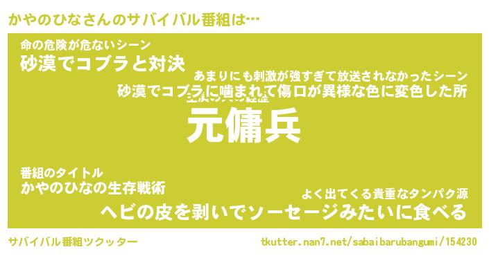 | ヒーロー風カッコイイあだ名 | 『スーパーカヤノヒナ』『幻影騎士カヤ』 |