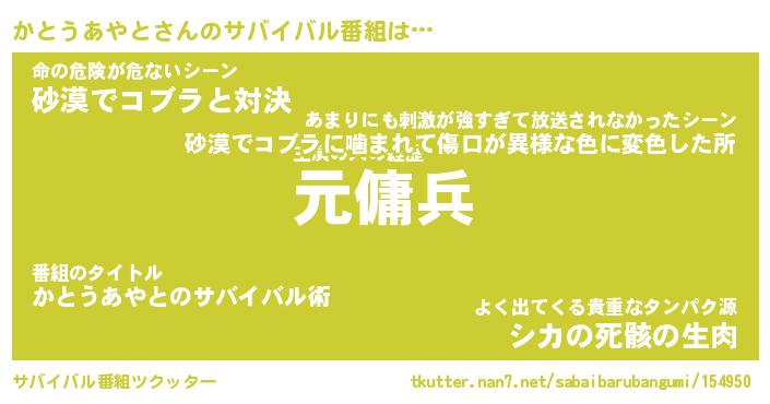 | 伝説のあだ名 | 『封印されし傭兵かとうあやと』 |