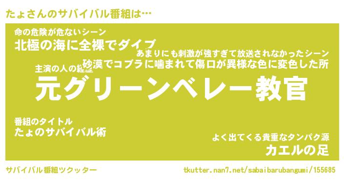 | ヒーロー風カッコイイあだ名 | 『スーパータョ』『ウルトラたょマン』 |