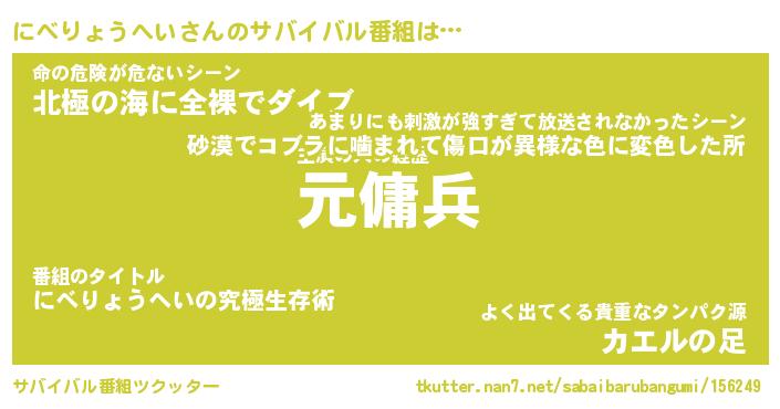 | 胡散臭い通販商品みたいなあだ名 | 『億万長者になれるブレスレット…その名も「にべりょうへい」』 |