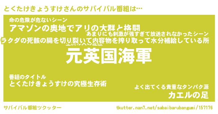 | 伝説のあだ名 | 『伝説の傭兵とくたけきょうすけ』 |