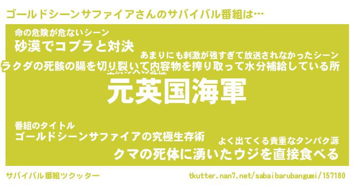| 胡散臭い通販商品みたいなあだ名 | 『必ず成功するブレスレット…その名も「ゴールドシーンサファイア」』 |