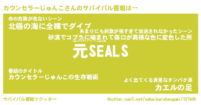 | 伝説のあだ名 | 『不死鳥のスナイパーカウンセラーじゅんこ』 |