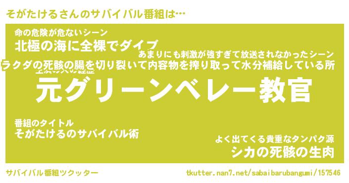 | 伝説のあだ名 | 『伝説のスナイパーそがたける』 |