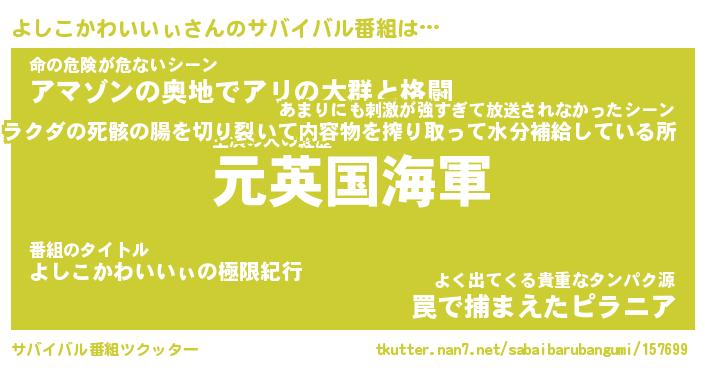 | ヘコむあだ名 | 『よしもー』『レバニラ』『よしを』 |