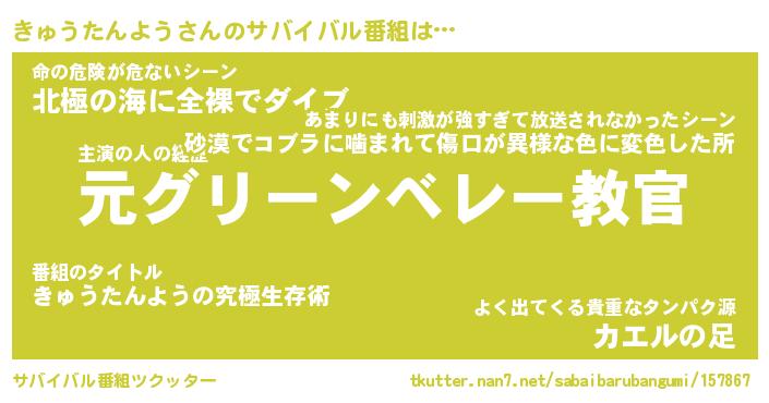 | ヒーロー風カッコイイあだ名 | 『スーパーキュウタンヨウ』 |