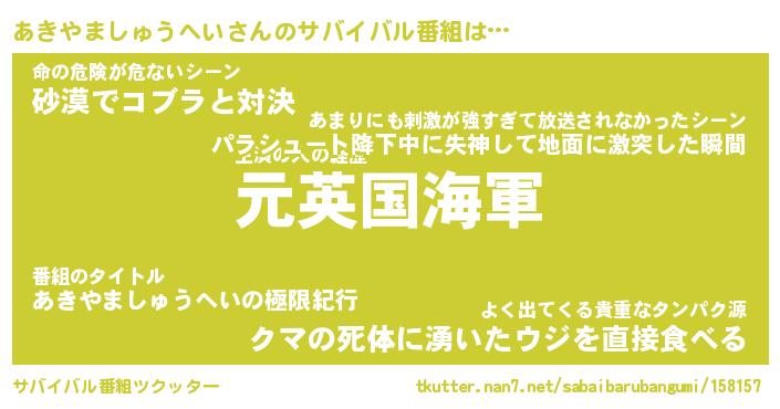 | 伝説のあだ名 | 『伝説のスナイパーあきやましゅうへい』 |