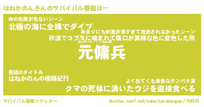 | 胡散臭い通販商品みたいなあだ名 | 『億万長者になれる霊験あらたかなお札…その名も「はねかのん」』 |
