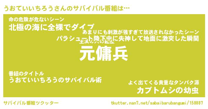 | 伝説のあだ名 | 『封印されし傭兵うおていいちろう』 |
