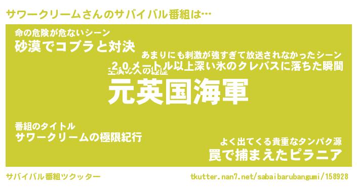 | 伝説のあだ名 | 『伝説のスナイパーサワークリーム』 |