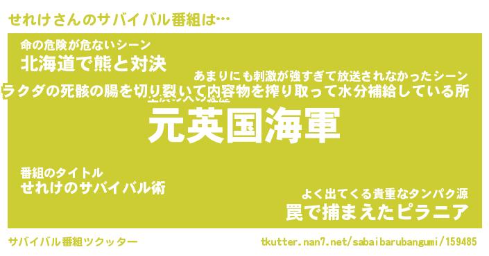 | 伝説のあだ名 | 『伝説のスナイパーせれけ』 |