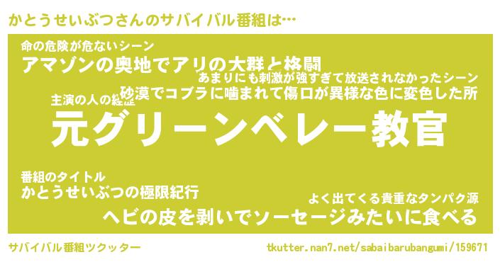 | 胡散臭い通販商品みたいなあだ名 | 『必ず成功するブレスレット…その名も「かとうせいぶつ」』 |
