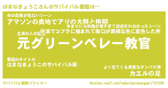 | ヘコむあだ名 | 『はまにー』『酢こんぶ』『はま太郎』 |