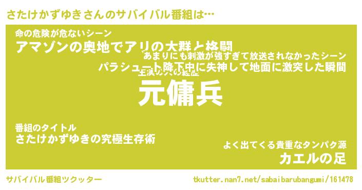 | 胡散臭い通販商品みたいなあだ名 | 『億万長者になれるブレスレット…その名も「さたけかずゆき」』 |