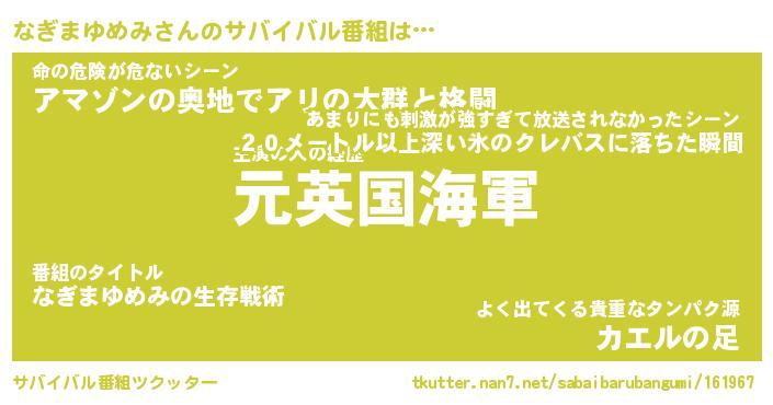 | ヘコむあだ名 | 『なぎにー』『酢こんぶ』『なぎを』 |
