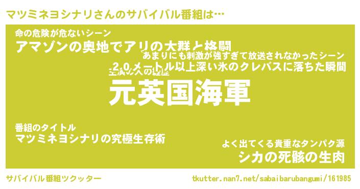 | 胡散臭い通販商品みたいなあだ名 | 『必ず成功するブレスレット…その名も「マツミネヨシナリ」』 |