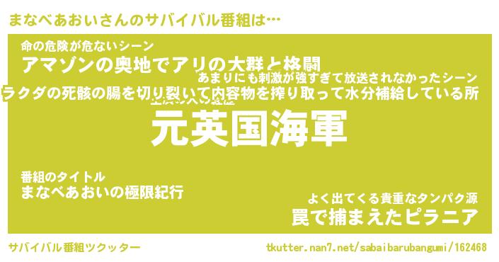 | 胡散臭い通販商品みたいなあだ名 | 『必ず成功する水晶球…その名も「まなべあおい」』 |