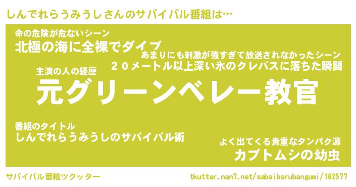 | 胡散臭い通販商品みたいなあだ名 | 『必ず成功するブレスレット…その名も「しんでれらうみうし」』 |