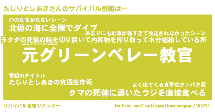 | 伝説のあだ名 | 『不死鳥のスナイパーたじりとしあき』 |