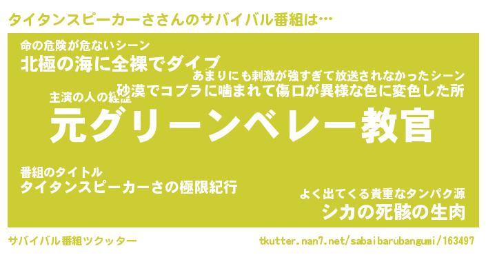 | 欧米人風あだ名 | 『マイケルタイタンスピーカーさ』 |