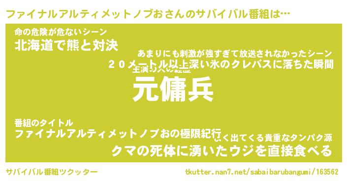 | 胡散臭い通販商品みたいなあだ名 | 『億万長者になれる霊験あらたかなお札…その名も「ファイナルアルティメットノブお」』 |