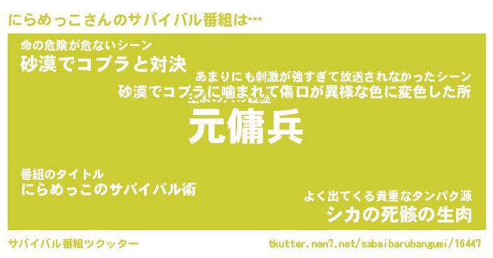 | ヒーロー風カッコイイあだ名 | 『スーパーニラメッコ』『暗黒騎士ニラ』 |